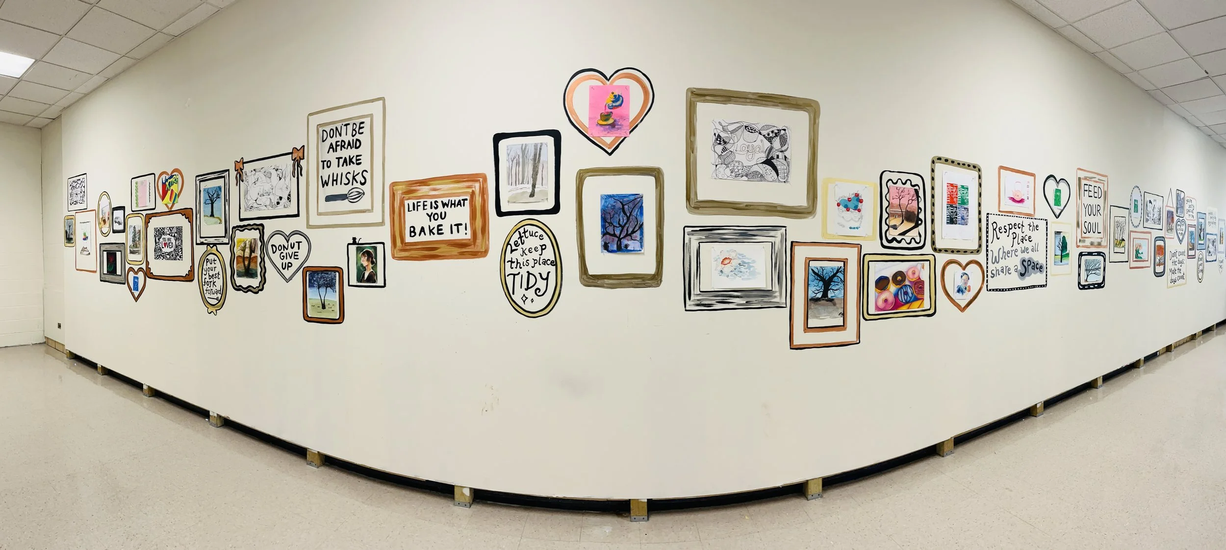 Please check out the new art installation in the Edgemont Jr. Sr. High cafeteria, showcasing awesome student artwork from various art classes, all framed in bright, hand-painted frames. The mural also includes positive messages about food designed to put a smile on everyone’s face. It’s a fun way to celebrate our students’ creativity and make the cafeteria a happier, more welcoming place for everyone. Special shout-out to Vedika Mandava, Lauren Lee, Ananya Shah, and Jade Wang for their help with the project